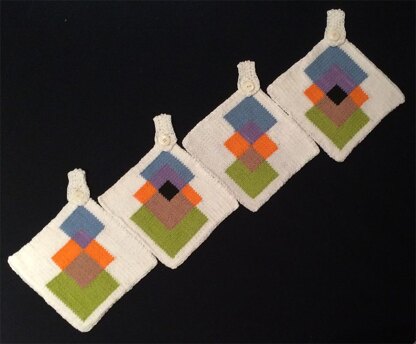 Four Pot Holders with Squares are designed by knitvana for kGeometry - knitting Geometry. Pot Holders sizes are 8” x 8”.