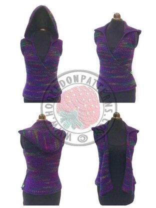 Crochet this casual hooded vest with wrapped cross front detail. A perfect wardrobe addition for in between cooler and warmer weathers. The vest is made up using a combination of single crochet and ch1 stitches, giving a woven texture which works up fast as you only need to work half the number of stitches!