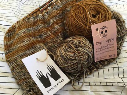 Yardage: 100g of Honest by Union Fibre = 215m, 100g of Kindness by Dye Happy = 210m