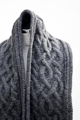 Swooping cables make this scarf look much harder than it is. Worked in aran-weight wool, it’s the perfect scarf for an extra-cold Winter. Pattern includes both charted and fully written instructions.