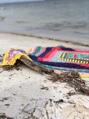 Kiss the Girl is lacy styled blanket. It is as lovely as a baby blanket as it is for a best friend. The characters represented by various stitches throughout the blanket are: Ariel Flounder Sebastian- using the Calypso Crab stitch which I created just for this blanket Ariel’s Sisters Flotsam & Jetsam Ursula King Triton