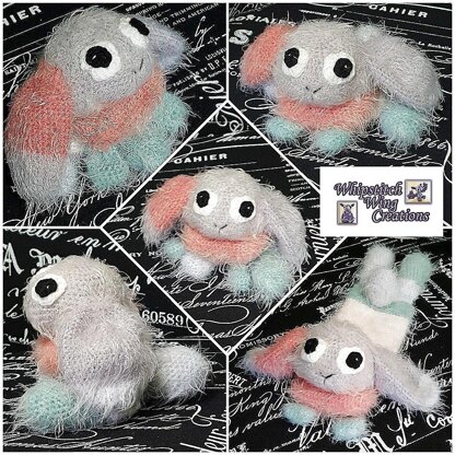 Welcome to Kit the Baby Bunny! This gorgeous little rabbit is made in the ragdoll style, and can be laid out flat or folded up into a sitting position. The example used in the pattern is made with Caron Latte Cakes (to create a fuzzy look), but any yarn or colours can be used. Options for several different types of eyes are provided in the instructions, and the pattern itself is very adaptable. You could easily change the positioning of the eyes and ears to create a range of different expressions, and features such as eyelashes, coloured patches and whiskers could be added. The body could also be stuffed and easily extended or shortened, making it useful as a wrist rest for a computer mouse. As always, I have included a variety of examples from my pattern testers to inspire you. I hope you have fun creating your very own Kit the Baby Bunny!