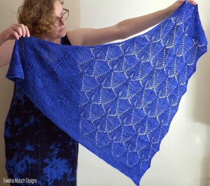 Kite Shawl is a reversible triangular shawl worked in an interesting stitch pattern that combines lace and ribbing to form kite-shaped motifs. The shawl is worked sideways from the right tip to the left bottom edge and its size is adjustable - to make it bigger, work more pattern repeats. The shawl looks best in solid or semisolid colourways.