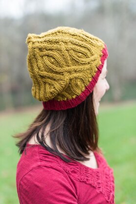 I loved the cable pattern in Kitra so much I decided to design a cowl and a hat with the same cable pattern. Kitra means “crowned one,” and the beautiful name reflects the shape of the hat, has a crown shape due to how the cables are worked. And it has some fun little points at the top made from the bobbles. It was also designed with Shibui Dune, a mix of baby camel and silk forming a deeply hued yarn that knits into a rich fabric without losing its natural roots. Now you can wear the crown on your head.