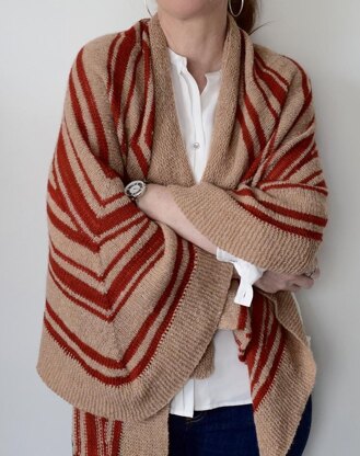 You will most definitely love to knit this top-down wrap with its stripes and uneven zigzags. And when the rows get a little long, we switch things up with a few short rows! Finish it up with a garter stitch border done sideways and voilà! Choose between two sizes for a wrap that will warm your shoulders!