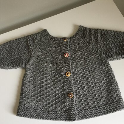 The pattern is offered in one size, to fit 6 to 12 months (or 46-51cm/18-20in chest). It takes 3 x 50gm skeins of double knitting weight yarn.