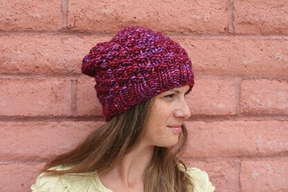 This is designed for super bulky yarn, but you can use double bulky, or use 4 strands of worsted or aran yarn.