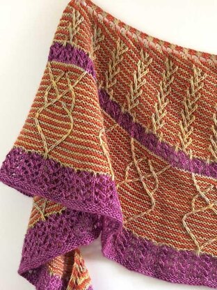 Kneisel Point is a crescent shaped shawl that combines artful slip stitch cables and a simple lace pattern in a melodic composition.