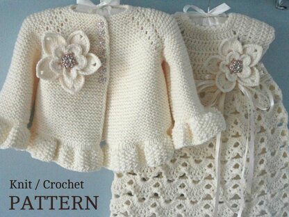 Knit Crochet PATTERN Newborn Baby Girl Clothes Jacket and Dress