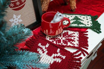 You know I can't get enough of all the holiday home decor and my little hamster buddy, Marlow. I have to say, while the Holiday Mug Rugs are for warm drinks, I could see using one as a rug for Marlows little house. He does seem to like the festive colors. I hope you enjoy the festive holiday home decor as much as I do!