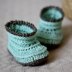 Pattern is made for size 0-6 months. I used DK-weight yarn. But I suggest to work with worsted weight yarn if you would like to make them for size 6-12 months, or with sport weight yarn if you would like to make them in newborn size.