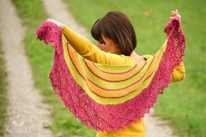 Knit Me is a top-down crescent shawl. Charted and written instructions. US and metric measurements.