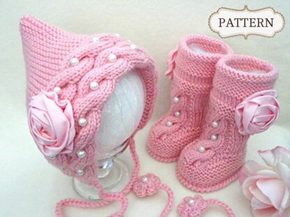 Knit Pattern Baby Bonnet Baby Shoes by Elena Mitchell