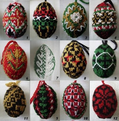 The pysanky are knit flat, embroidered, then sewn up and stuffed. The pattern includes graphs for 12 different eggs and a variation on one. Knit at the recommended tension, each egg is 3-3.5" high, and they will fit in a large egg carton.