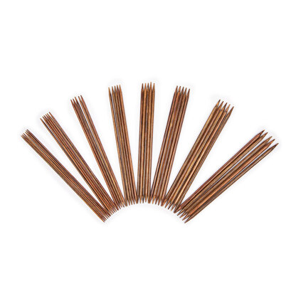 Made of exquisite, laminated wood, the KnitPro Ginger Double Point Needle Set (20 cm) contains eight sets of five DPN in sizes ranging from 2.50mm to 6mm. The needles all have perfectly tapered points at both ends and are presented in a handy case to keep them clean and safe.