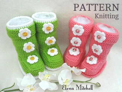 Knitted Baby Girl Booties Aurora Pattern by Elena Mitchell