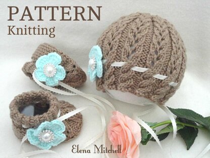 The Baby Hat and Shoes are knitted on two needles ( Flat work ).