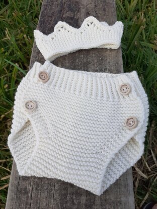 My daughter asked me to create a knitted birthday crown for her son's 1st birthday. I created one for him and decided how cute they would look for a newborn babies' photoshoot and then decided to knit a nappy cover.