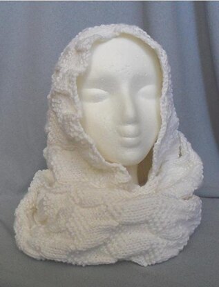 Measurements: 16 1/2" from top of hood to bottom of scarf 8" along the top of the hood 55" around the bottom of the scarf 5 1/2" wide scarf