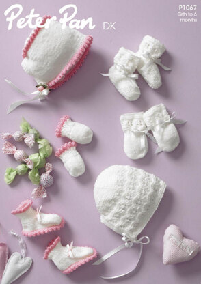 Knitted Hats, Booties and Mittens in Peter Pan DK 50g - P1067
