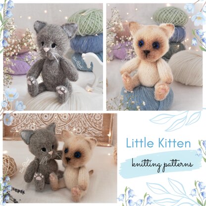 About Kitten knitting pattern: The pattern is written as row-by-row description and contains helpful step-by-step photos for important parts. The file is 19 pages long and contains 90 detailed step-by-step photographs along with complete pattern instructions how to make sweet kitten doll. The limbs of this cat are poseable.