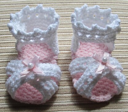 KNITTED SANDALS WITH RIBBON BOWS 0-3, 3-6, 6-9 MONTHS