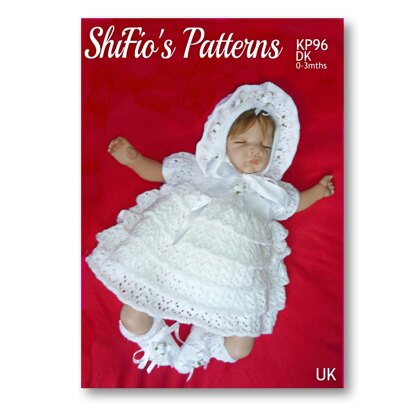 Knitting Dress, hat & booties UK & USA Terms #96