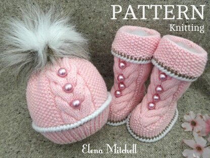 The Baby Booties and Hats are knitted on two needles.