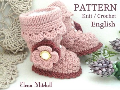 Knitting PATTERN Baby Booties with Crochet edging and flowers