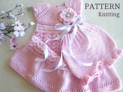 1 ) Knitting PATTERN Baby Dress with Knitted Flower