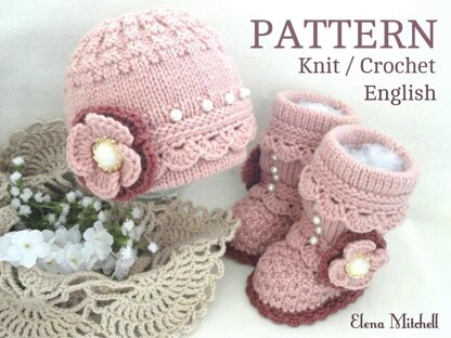 Knitting PATTERN Baby Girl Outfit Baby Cap and Baby Booties
