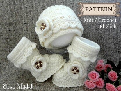Knitting PATTERN Baby Shoes and Cap Baby Set with Crochet Edging