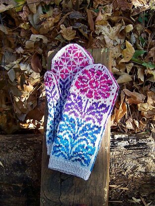 December 2013: two wider versions added to the PDF - one is with an afterthought thumb, another one with a gusset. Check the charts in the end of the file. I designed these mittens trying to come up with a smart way to use different color yarn leftovers. Please be creative, and don't be afraid to experiment using more or less colors (and yarn leftovers, too :-)). You can knit with just two contrasting colors in Selbu style, or try switching background colors while keeping the flower color constant, or just make them using tonal yarn with subtle color variations; the possibilities are endless, and the choice is yours! I am sure your own pair of mittens will look beautiful!