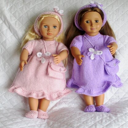 Knitting pattern Dress, Headband, bag & shoes for 18 inch fashion Doll