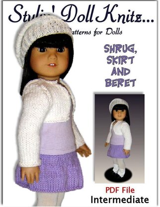 Knitting Pattern, fits American Girl and all 18 inch dolls, shrug and skirt. 034
