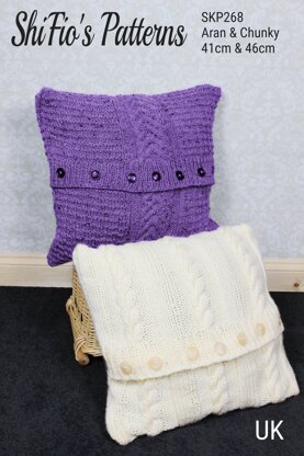 Knitting pattern For 2 Cushion covers in 2 sizes Make them in different colours to layer up on your bed or sofa Knitting needles 5.5mm/9, or 6.5mm/10, cable needle