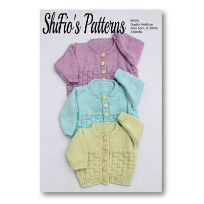 Knitting Pattern for Babies Round Neck Cardigan New-Born, 0-3mths, 3-6mths #590