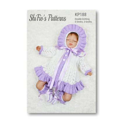 It is easy to see why this is our popular ruffled edged matinee jacket pattern. This exquisite matinee jacket pattern and stunning hat, would make a wonderful gift for a new mum. Imagine your new baby, grandchild, niece etc snuggled in this beautiful set made in UK-DK, USA-Light Worsted (3) you will also need 3 buttons Knitting needles UK- 3.75mm / USA 5