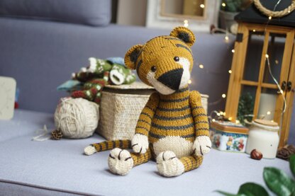 Tiger is about 38cm/15'' Knitting Tiger Toy Pattern: • Stitch-by-stitch Knitting Pattern (2 needles version) • Video Tutorials (check below)