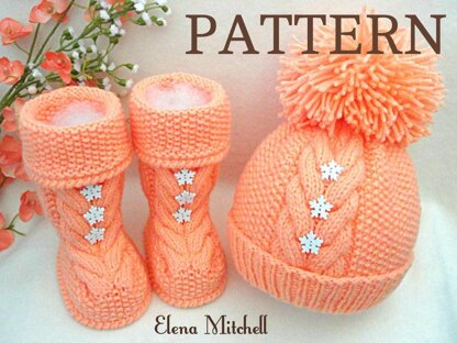 Knitting PATTERN Warm Baby Set Shoes and Hat