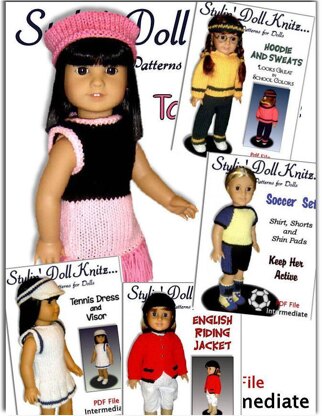 This package includes five pdf knitting patterns that fit 18 inch and American girl dolls, (Maplelea Girl, Gotz)
