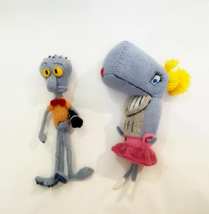 Knitting Patterns -Knit an adorable Pearl Krabs and Squidward DIY toys