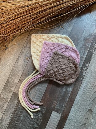 You can also knit this bonnet with any yarn that have 21-22st = 10cm and a minimum of 170meters/50gr. I have used Drops Puna, Coast from holstyarn.dk