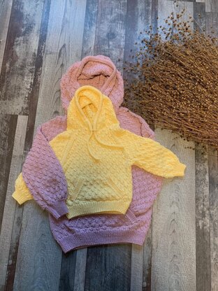 A hoodie with an easy pattern and a pocket on the front piece.