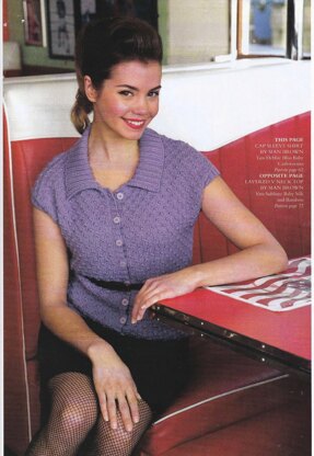 This is a pattern for a Knot Stitch Cardigan, originally published in Knitting magazine in a retro issue. It is a simple shape with cap sleeves, a collar an a button front. It is in a simple knot stitch with rib edges. Photos Laurel Guilfoyle for Knitting magazine.