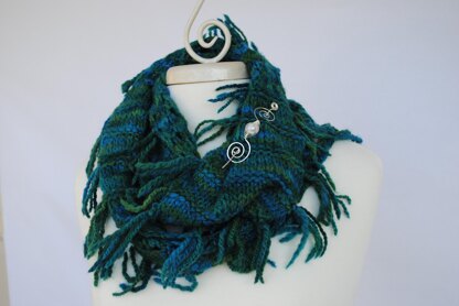 Knots Ahoy is a fully-reversible infinity cowl with optional fringe. It comes in two styles and features paired stitch patterns that get along splendidly with variegated, gradient, or solid colored yarns. Add a Shawl Pin for the perfect finishing touch.