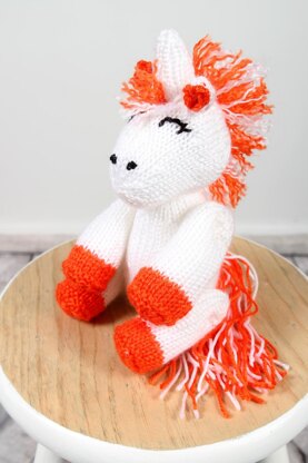 Sitting at just 15cm tall this happy little unicorn is a fast knit and a great way to use up those left over balls of yarn.