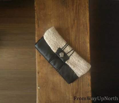 This clutch has turned into one of my favourite pieces. The mixture of materials gives the bag its classic and timeless look, yet adding to the durability and versatility. The clutch body is simple and quick, made from 100% wool that will be thrown into the washing machine to felt. Next you’ll add the classic elements of a leather bottom and opening tab detail. Finish it off with an interesting button or unique item to use as your closure. The finished size is about 4.5” x 9.5”, perfect for larger cell phones and all your little knick-knacks. You can also add a strap and turn the clutch into a wristlet.