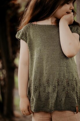 Die Korn Blus Flutter Kids ist die legere Schwester der Korn Blus. Im Gegensatz zur Korn Blus wird Die Korn Blus Futter Kids komplett nahtlos von oben nach unten in Runden gestrickt. Der Ausschnitt wird durch verkürzte Reihen geformt und die Flügelärmel sind länger als bei der alten Korn Blus. Auch um den Körper sitzt Die Korn Blus Futter Kids sehr viel lockerer und luftiger.