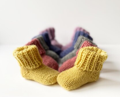 Adorable seamless baby socks knitted from toe-up with short row heel.